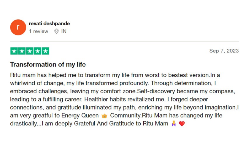 Join Ritu for a 3-hour LIVE MasterClass where you'll discover how to become the Energy Queen and take command of your life. You'll gain insights into common challenges women face and receive a proven 6-step plan for fulfillment in areas like health, wealth, relationships, and more. Plus, learn about the Energy Queen's Hub.