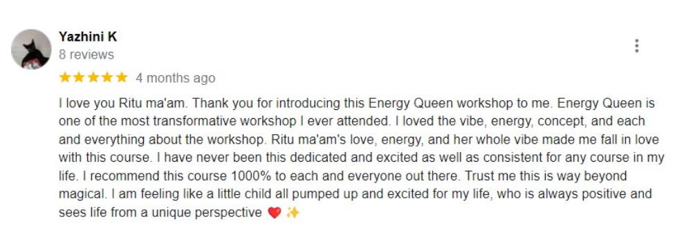 Remember… Person with the Highest Energy always Wins. This is the mantra given to me by my mentor and it has helped so many women in this community to be In-Command of their Life.